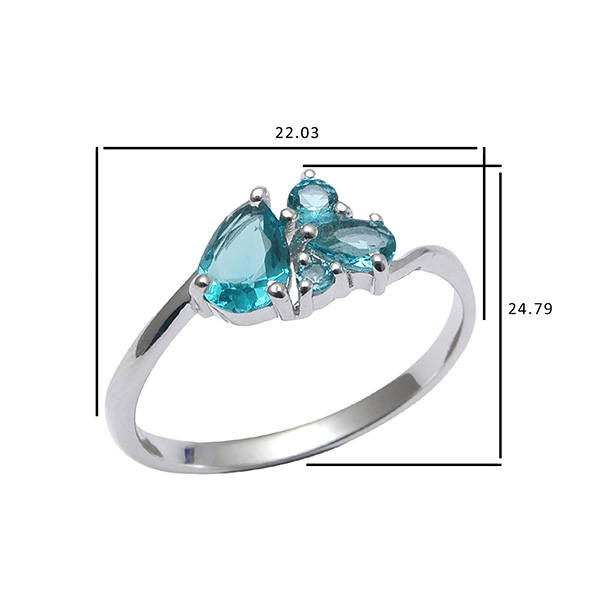 Кольцо из серебра 925 пробы с аквамарином синтетическим, покрытие: Родий. Средний вес изделия 2,09 гр.
