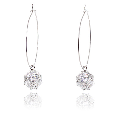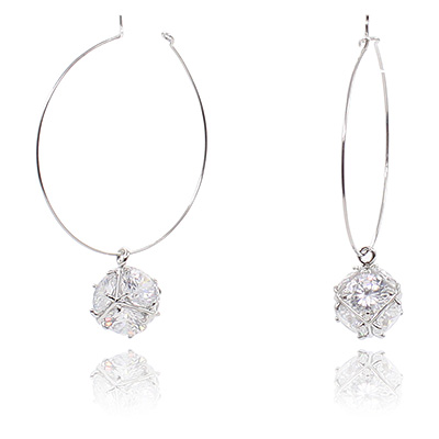 Роскошные серьги с 6 фианитами цвета "хрусталь". Размер декоративной части 1,3мм. Диаметр застёжки 4см. Размер камня 8мм.