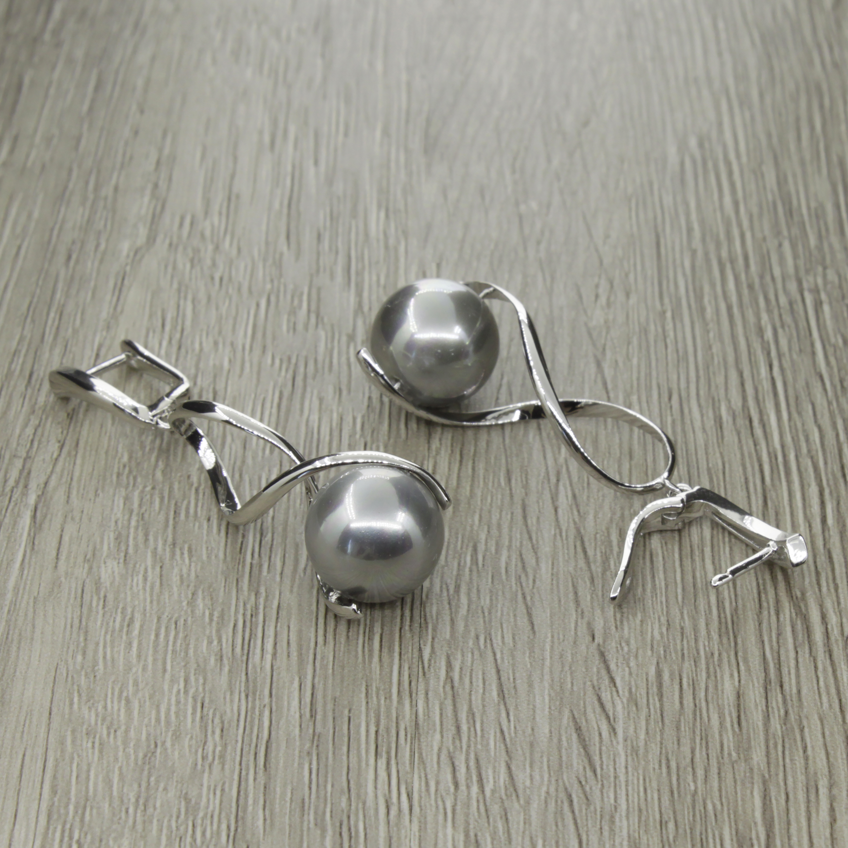 Серьги выполнены из ювелирного сплава и серой майорки. Длина сережки 55мм. Диаметр шара 12мм.
