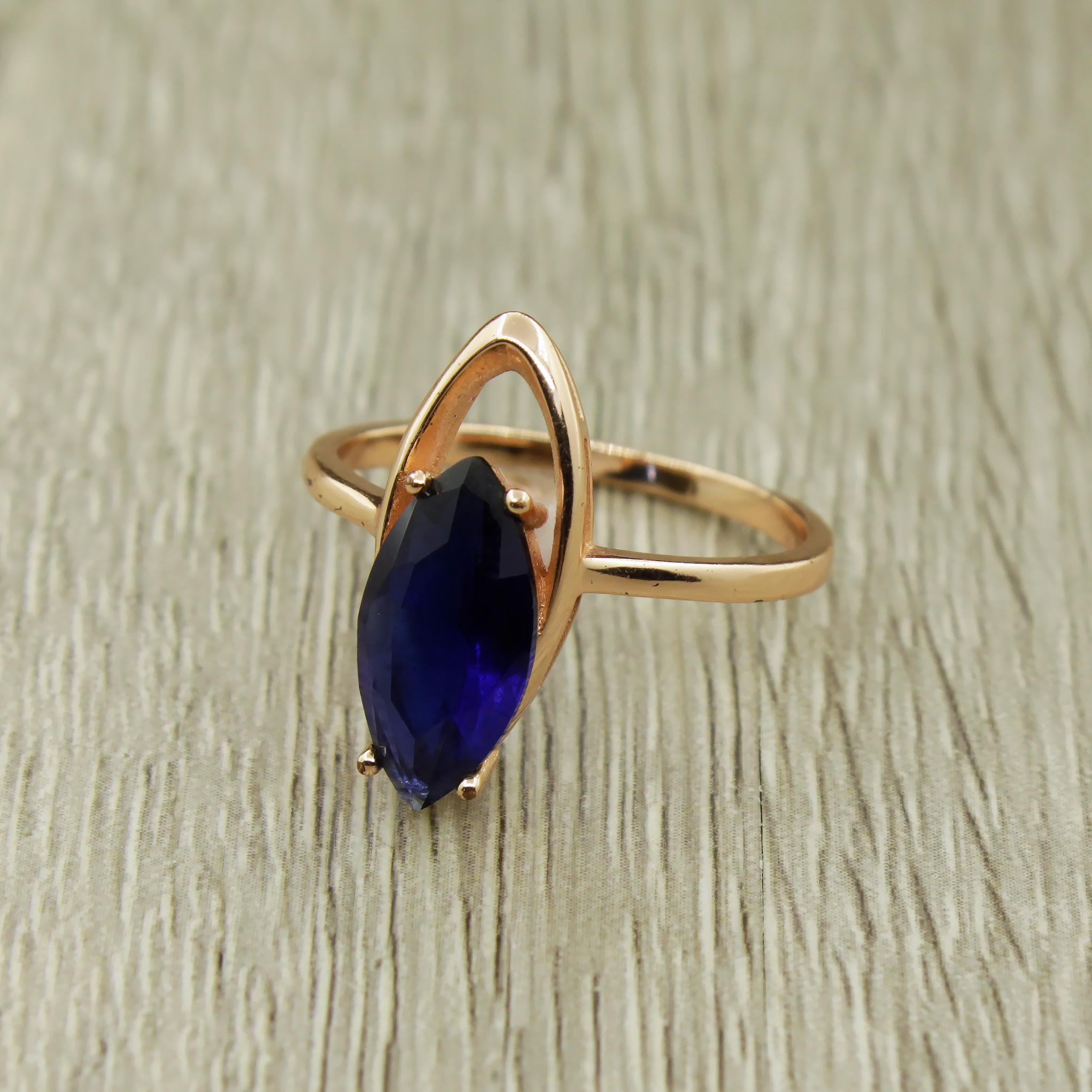 Изящное кольцо с фианитом "сапфир" - яркий элемент Вашего повседневного или праздничного образа. Размер фианита 7x14мм. Размер кольца 19.