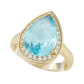 Изящное кольцо с фианитом "голубой топаз" - нежный элемент Вашего повседневного или праздничного образа. Размер фианита 10x13мм. Размер кольца 18.