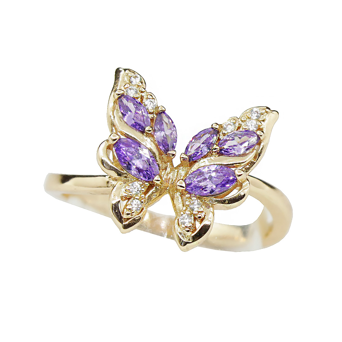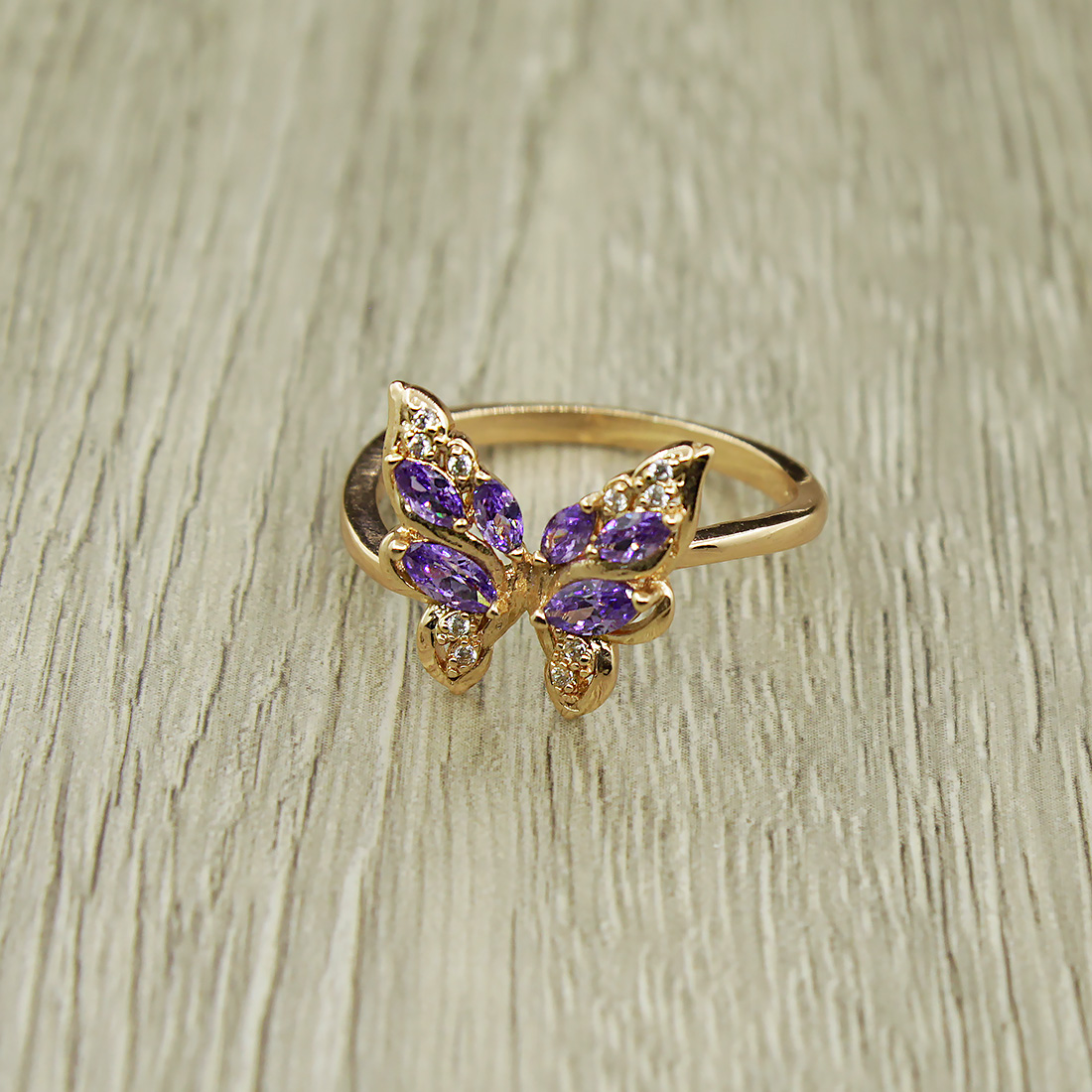 Кольцо "Бабочка" фианит "светлый аметист" размер 19
