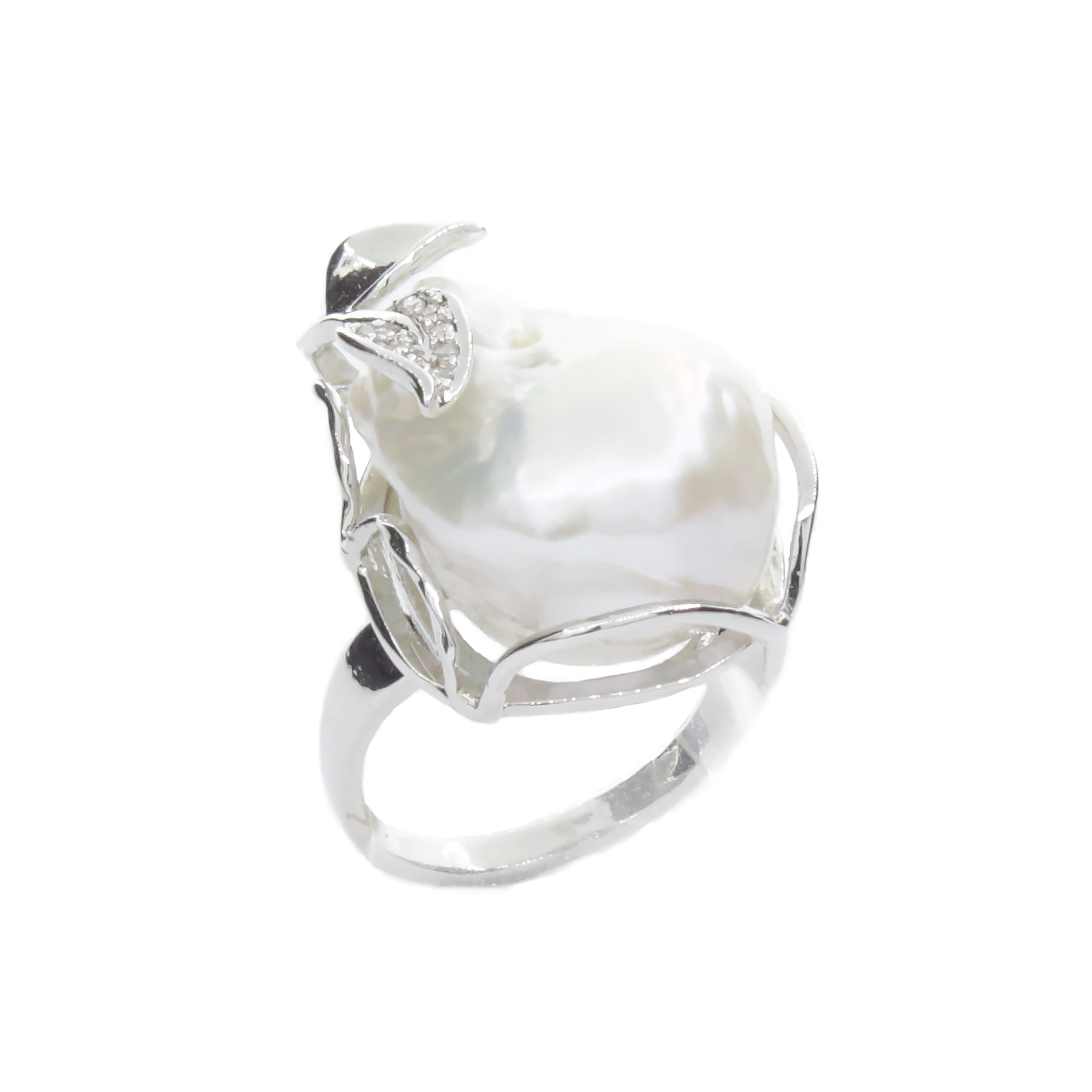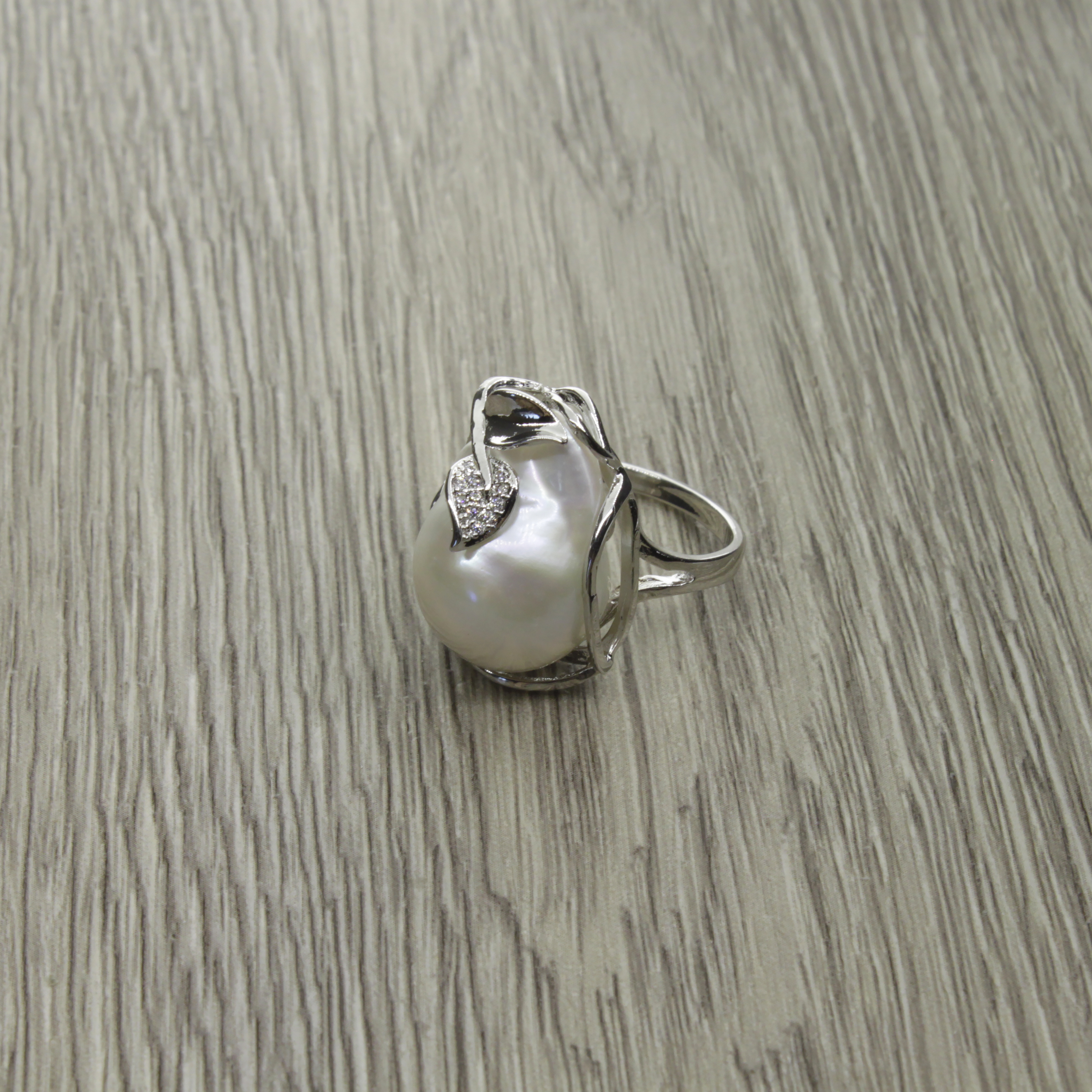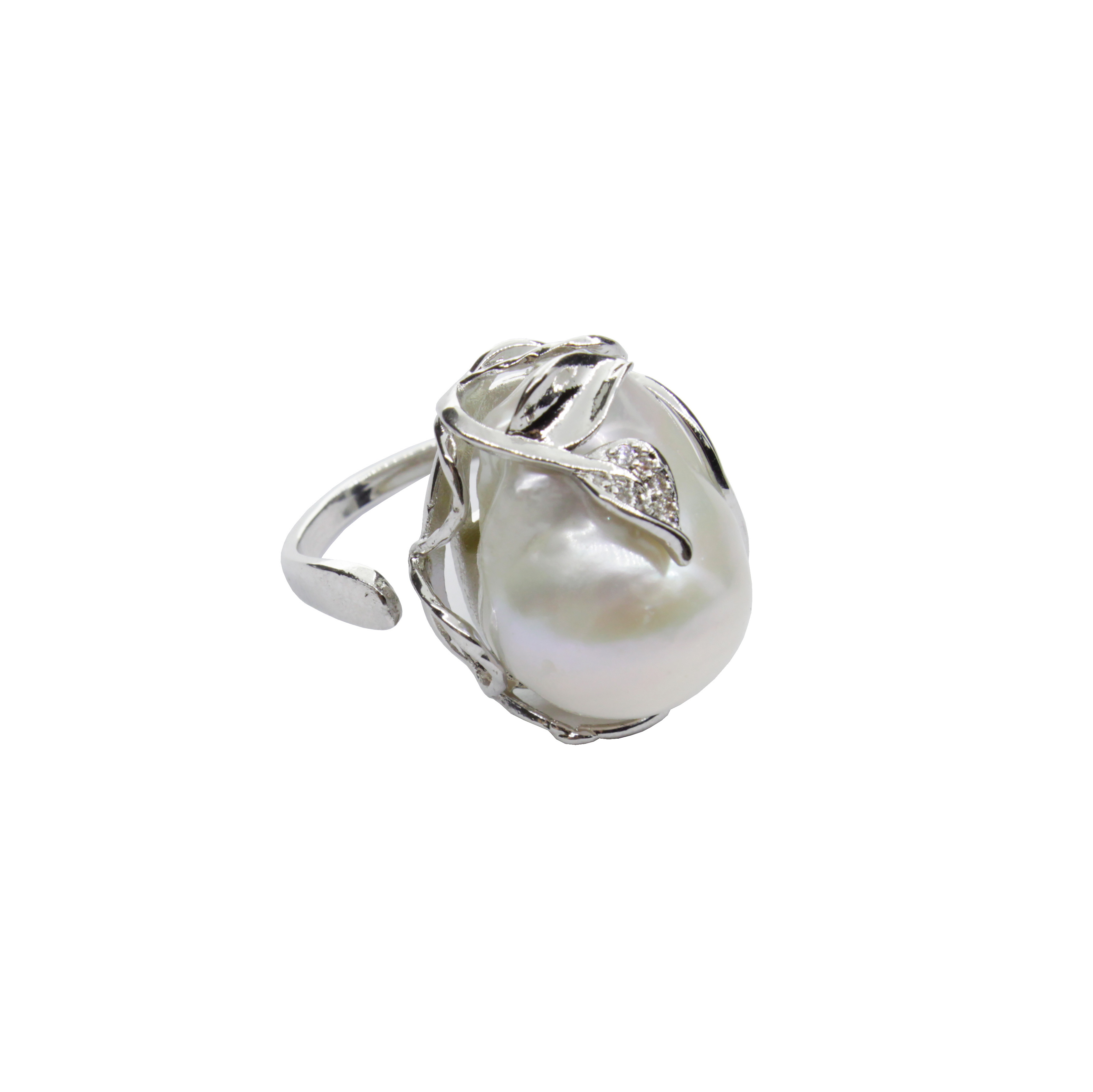 Кольцо с белым жемчугом "Барокко" из ювелирного сплава