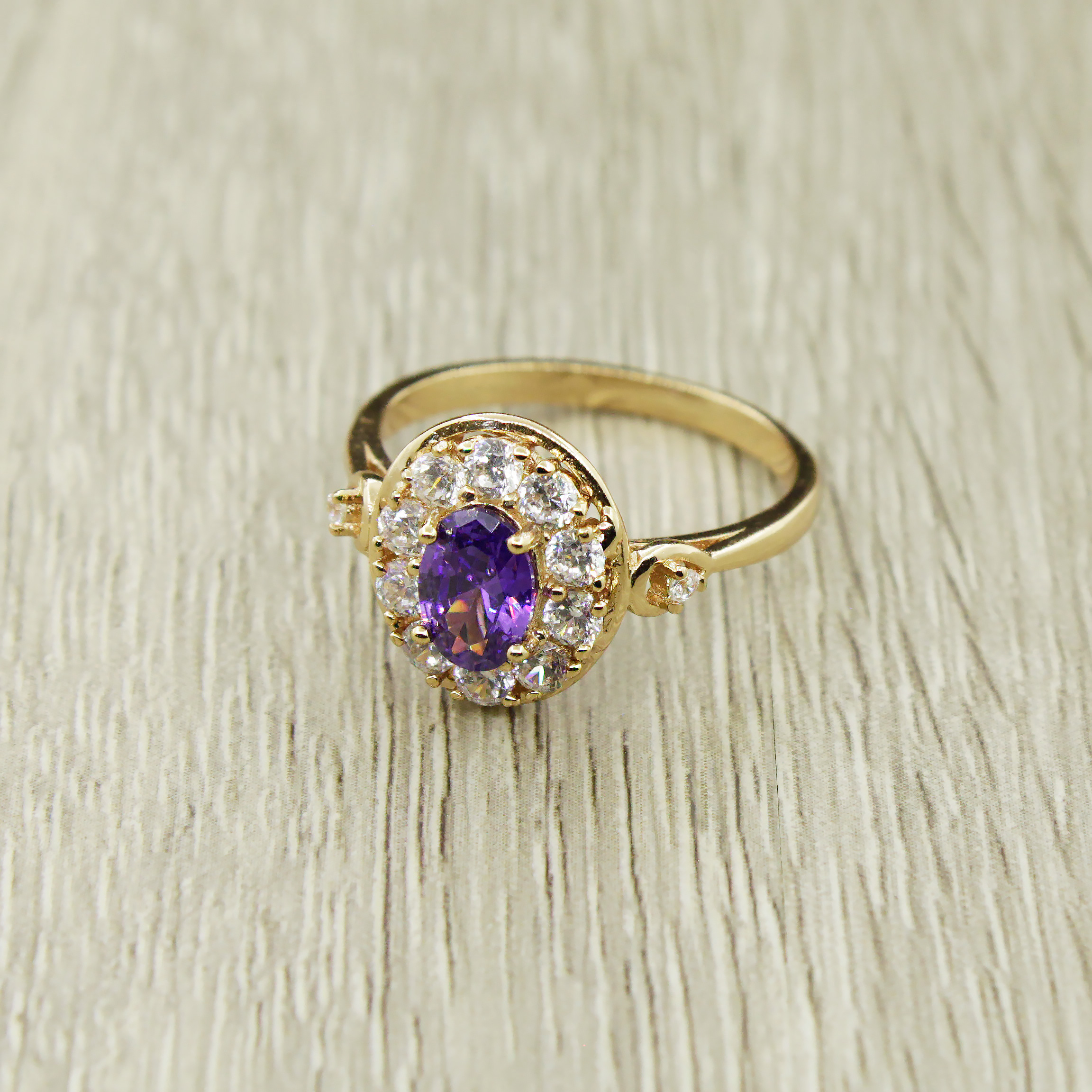 Изящное кольцо с фианитами "аметист" и "хрусталь" - нежный элемент Вашего повседневного или праздничного образа. Размер фианитов "хрусталь" 2мм, "аметист" 5x7мм. Размер кольца 18.