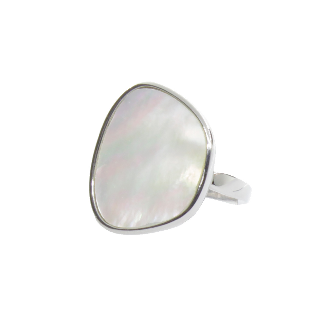 Кольцо из белого перламутра и ювелирного сплава "Ренессанс" со вставкой неправильного овала