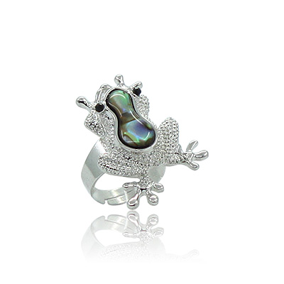 Изящное безразмерное кольцо из перламутра "Лягушонок".