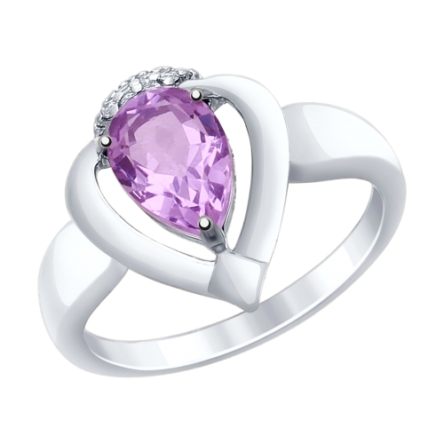 Аметист (Бразилия) / Фианит - искусственно выращенный бриллиант. / Серебро / Родированное покрытие.
