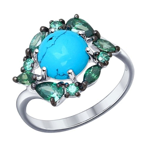 Кольцо SOKOLOV из серебра с бирюзой (синтетическая) и фианитами