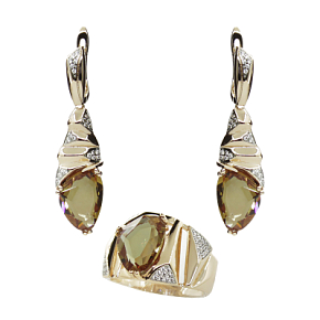 Солидный комплект со вставкой из султанита и качественным покрытием. Размер кабошонов: 10х15мм, ширина кольца 16мм, длина серёжек с застёжкой: 40мм. Находится на удаленном складе (отгрузка на 2 дня позже)