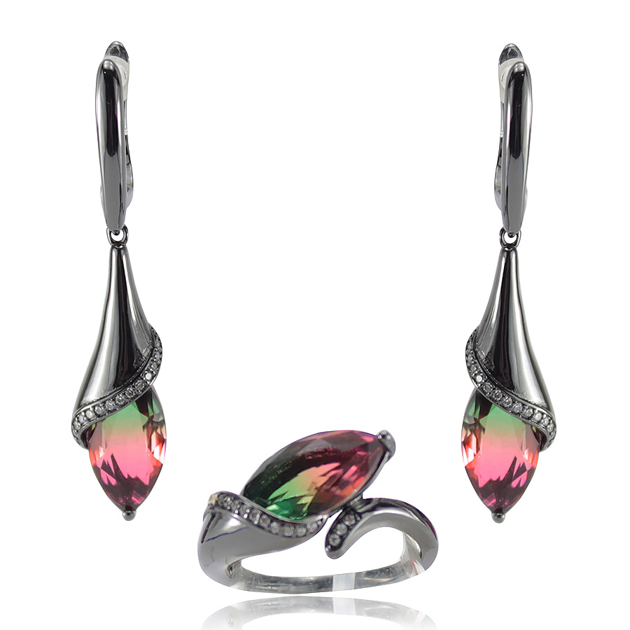 Комплект "Элегия" фианит цвет "турмалин" 19