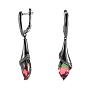 Очаровательный комплект с фианитами цвета "турмалин". Размер камня 8х16мм. Размер сережек вместе со швензой 46мм.