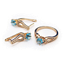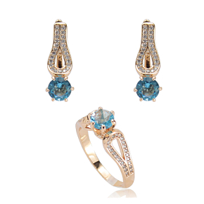 Очаровательный и изысканный комплект «Урсула». Каждый предмет комплекта украшен фианитом цвета «голубой топаз». Размер камня 7мм. Размер серег 20мм. Размер кольца 20.