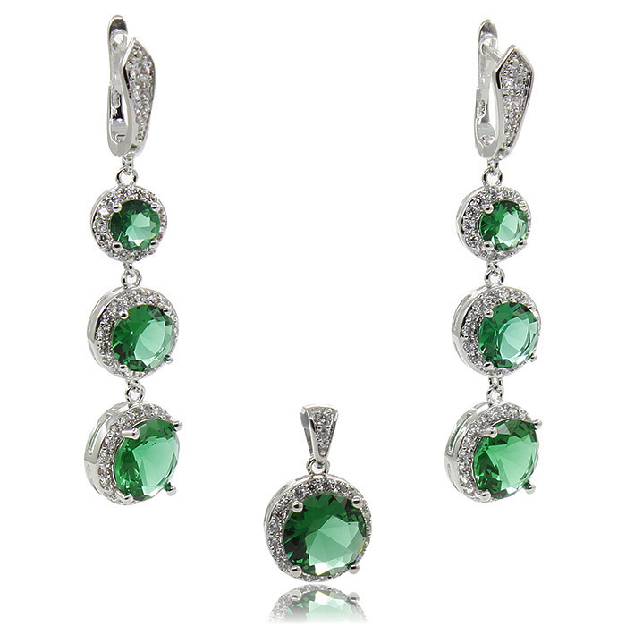 Комплект "Екатерина"зеленый (кулон + серьги), камень фианит "изумруд"