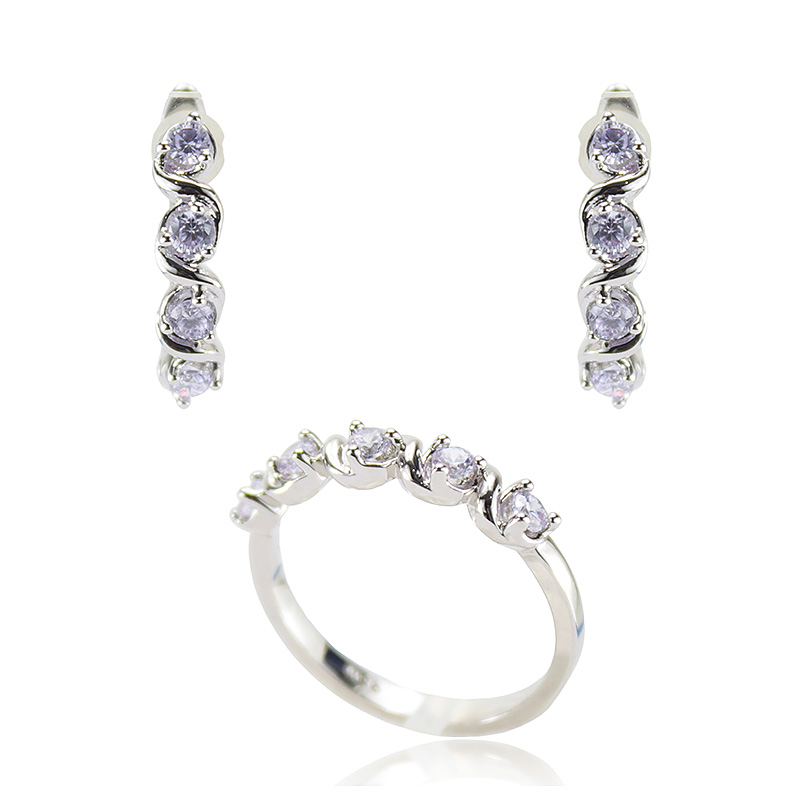 Этот очаровательный комплект "Элизабет" инкрустирован небольшими фианитами цвета "хрусталь". Размер камней 2мм. Размер серег 16мм. Размер кольца 20
