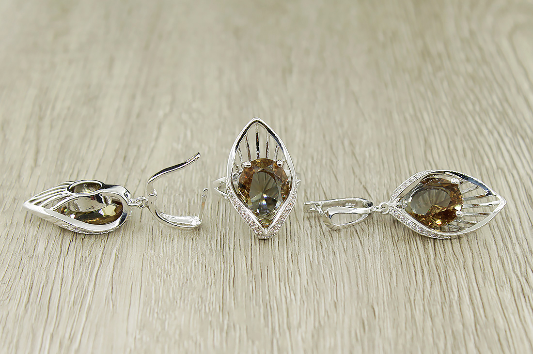 Солидный комплект со вставкой из султанита и качественным покрытием. Находится на удаленном складе (отгрузка на 2 дня позже).