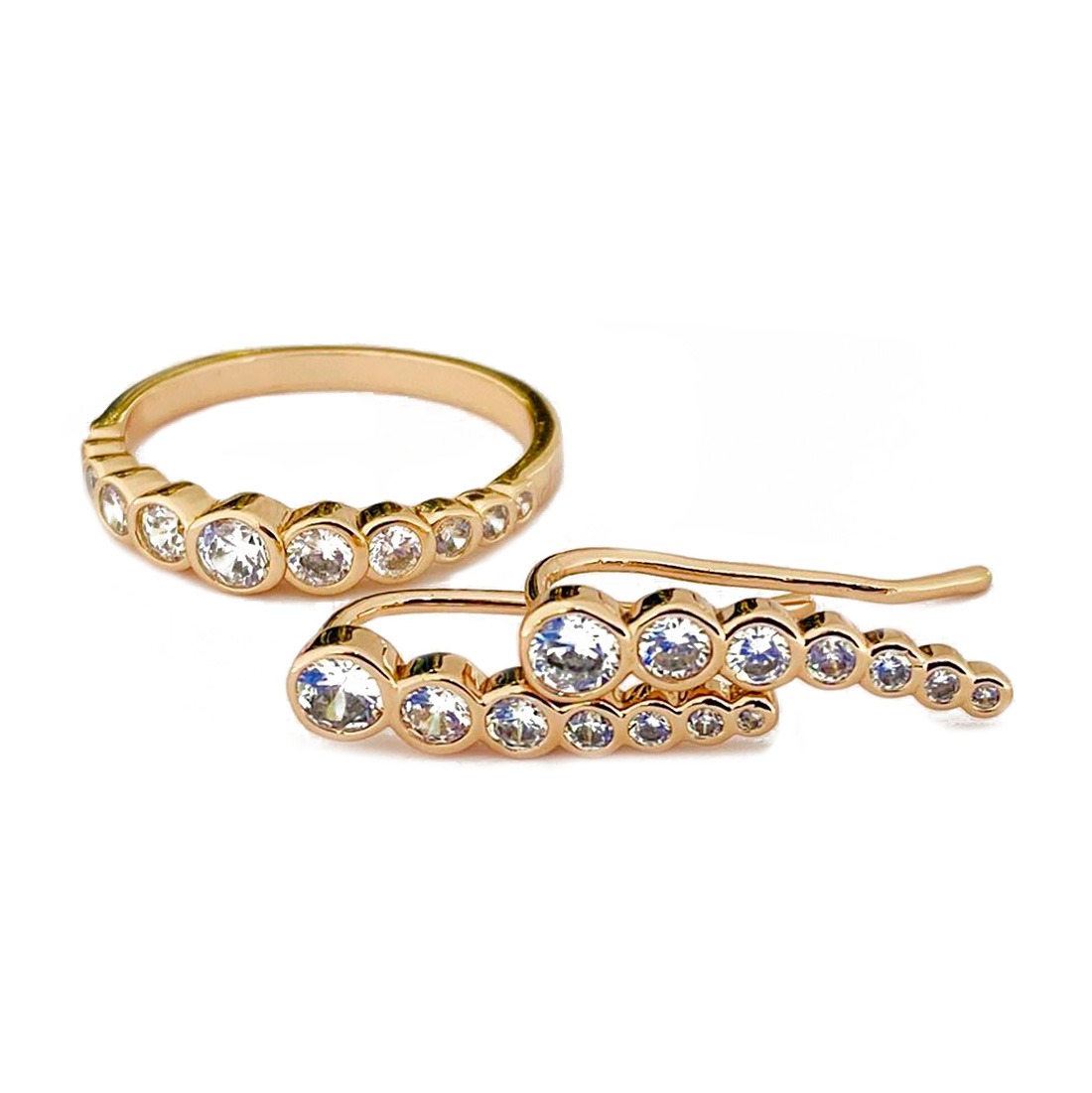 Милый комплект со вставками из фианитов цвета «хрусталь» и обрамлением под золото. Находится на удаленном складе (отгрузка на 2 дня позже).