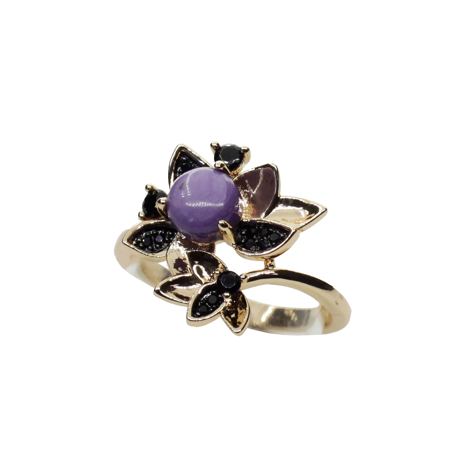 Комплект "Чара-4", чароит, покрытие под золото, размеры кольца: 17, 18, 19, 20
