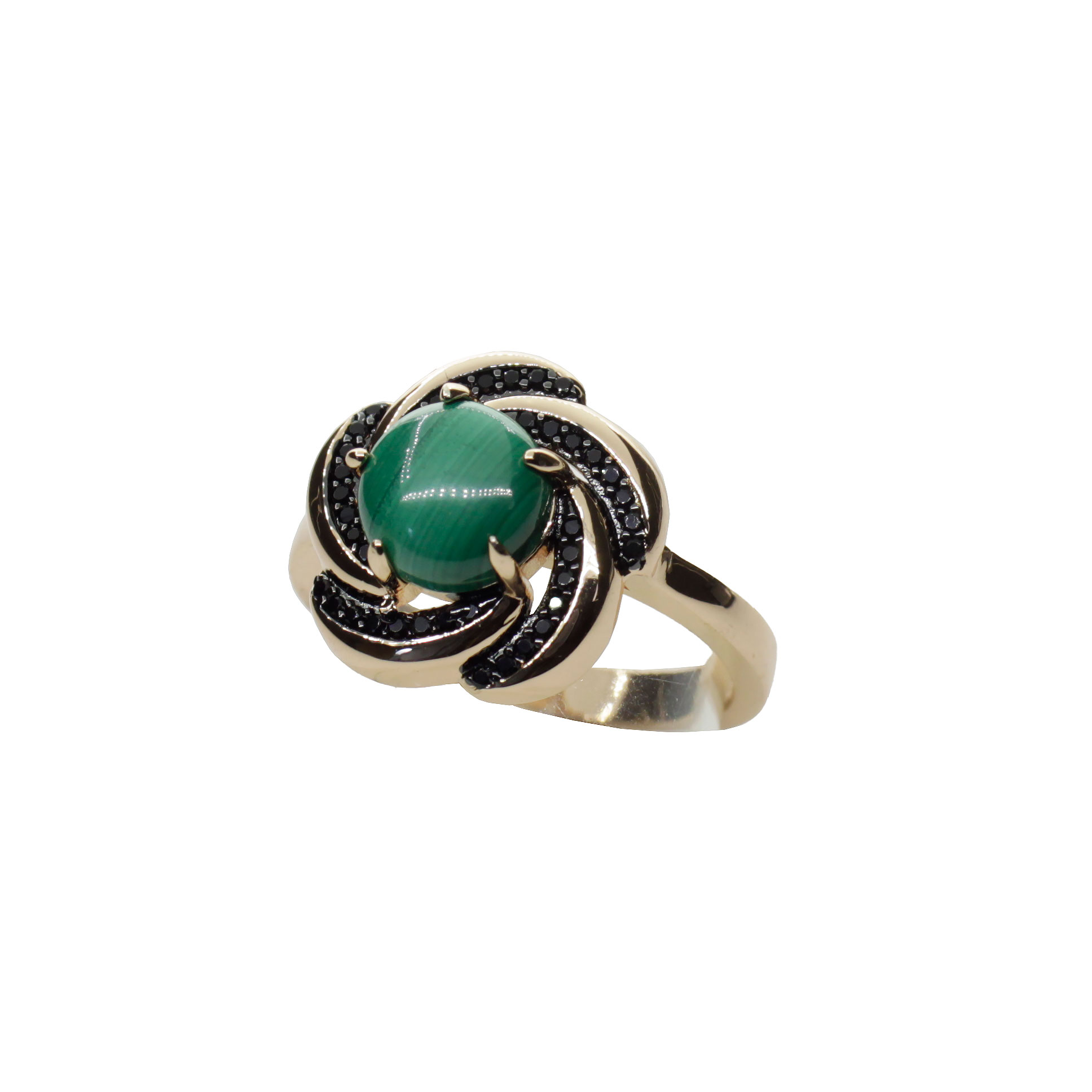 Стильный комплект с натуральным малахитом и качественным покрытием. Диаметр камня в серьге: 8мм, размер серьги с застежкой: 22мм. Диаметр камня в кольце: 8мм.