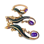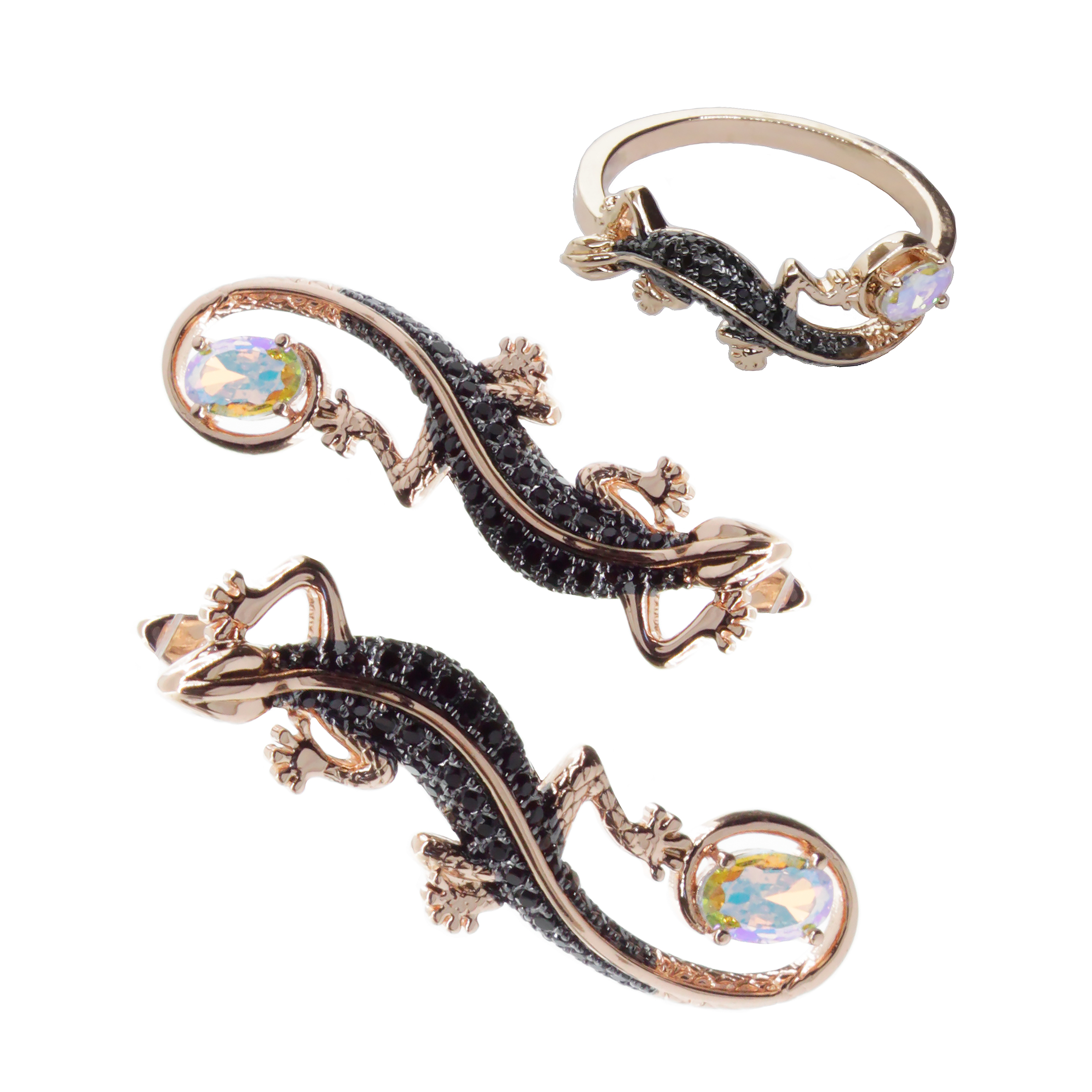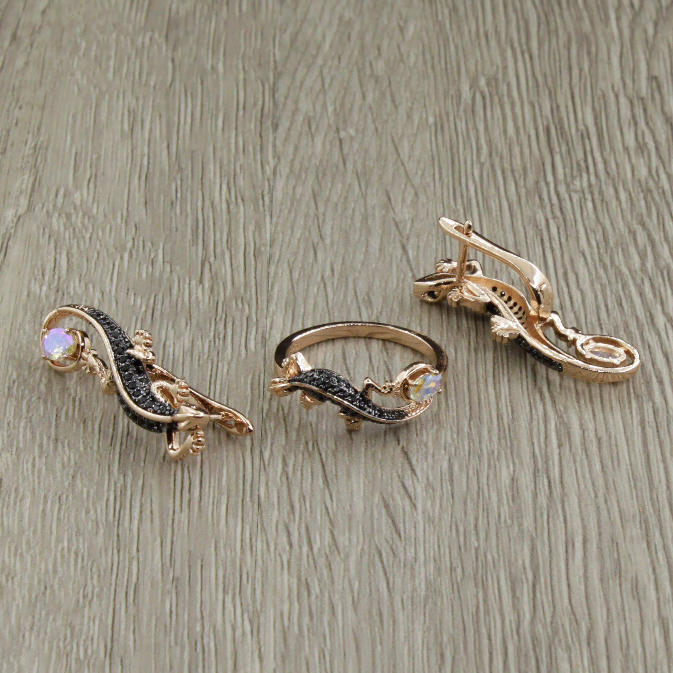 Комплект "Ящерки", фианит цвета "опал", покрытие под золото, размеры кольца:17, 18, 19, 20