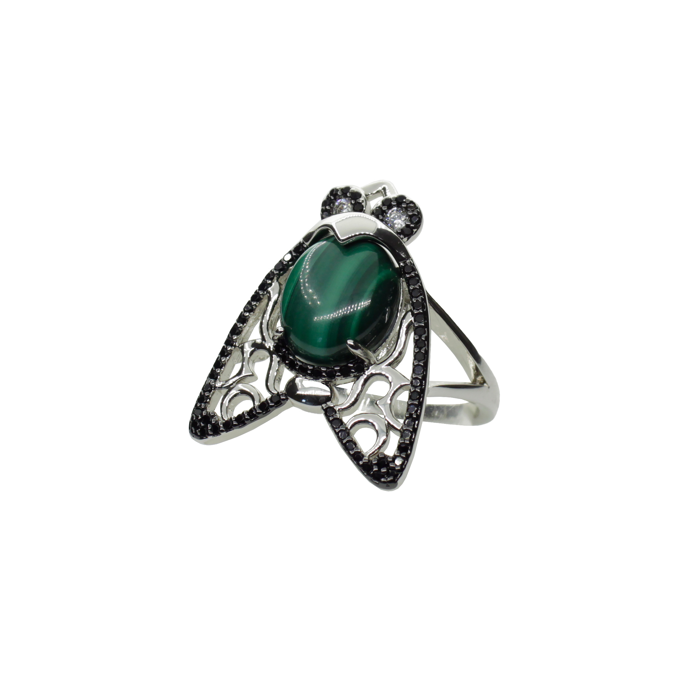 Комплект "Мила-9", малахит, покрытие родий, размеры кольца: 17, 18, 19, 20