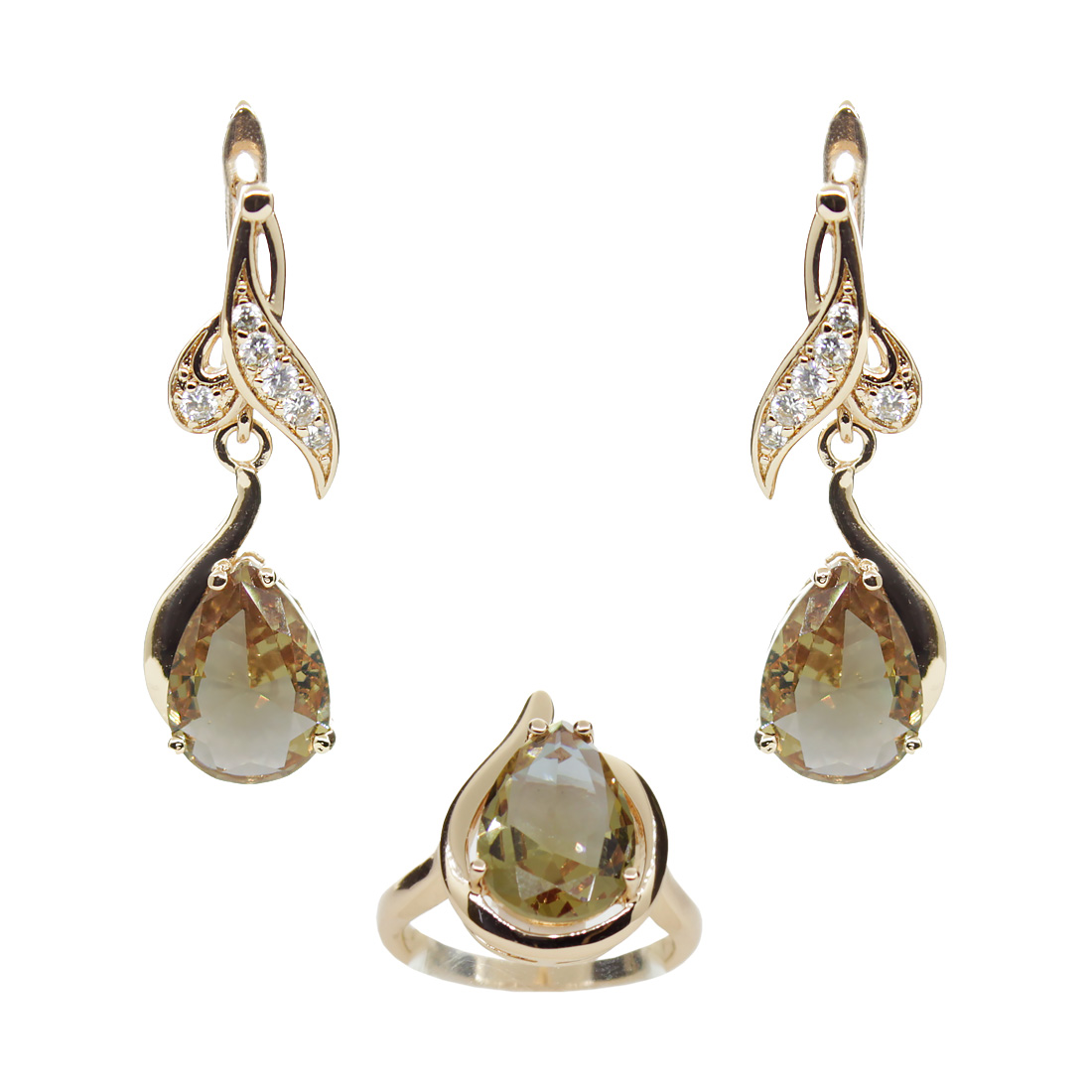Комплект "Султан-10", султанит, покрытие под золото, размеры кольца: 17, 18, 19, 20