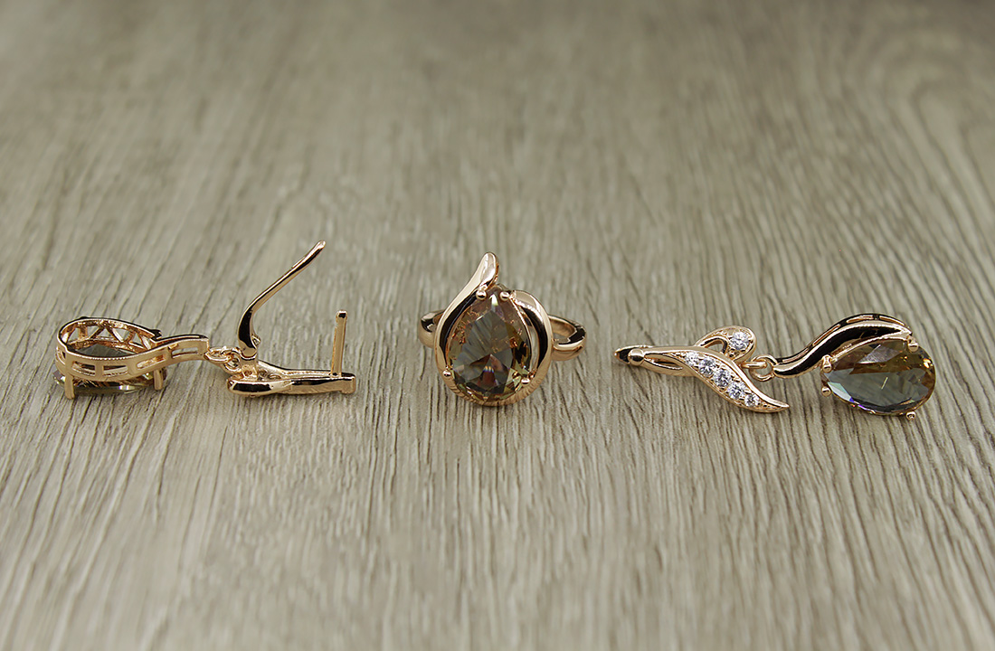 Солидный комплект со вставкой из султанита и качественным покрытием. Длина серьги с застёжкой: 40мм. Размер камня серьги и кольца: 5х9мм. Находится на удаленном складе (отгрузка на 2 дня позже).