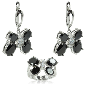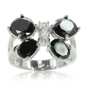 В одной такой бабочке используется сразу 6 фианитов, которые точно имитируют цвет натуральных камней - горного хрусталя и черный шпинель. Размер кольца 20.