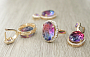 Комплект "Регина" фианит "турмалин" фиолетово-голубой покрытие под золото, размеры кольца: 17, 18, 19, 20