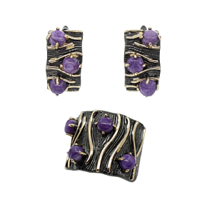 Комплект "Чара-51", чароит, покрытие под бронзу, размеры кольца: 17, 18, 19, 20