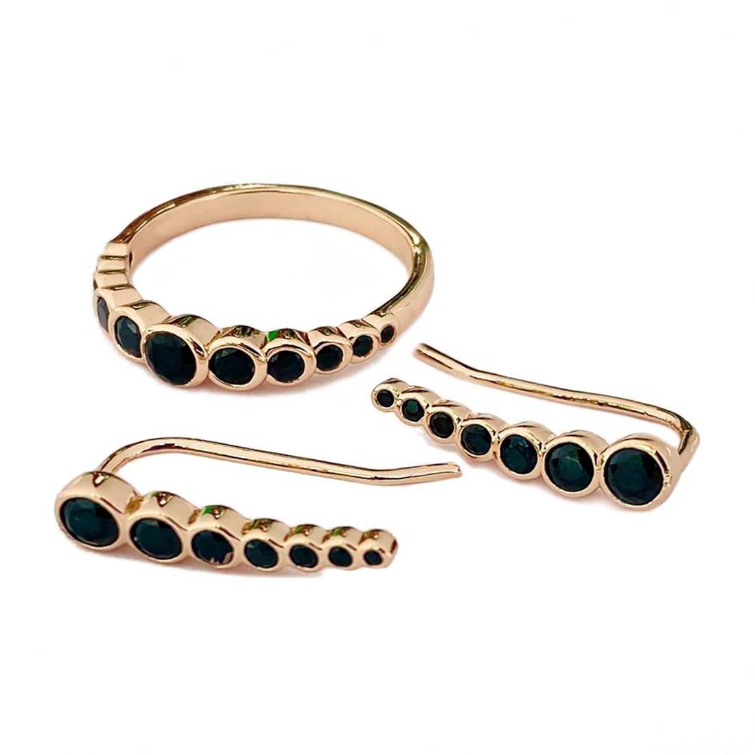 Милый комплект со вставками из фианитов цвета «черный» и обрамлением под золото. Находится на удаленном складе (отгрузка на 2 дня позже).