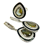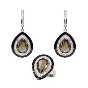 Солидный комплект со вставкой из удивительного камня султанит и родированным покрытием. Размер вставки: 20х26мм; размер камня: 11х15мм; длина серьги с застёжкой: 44мм. Находится на удаленном складе (отгрузка на 2 дня позже).