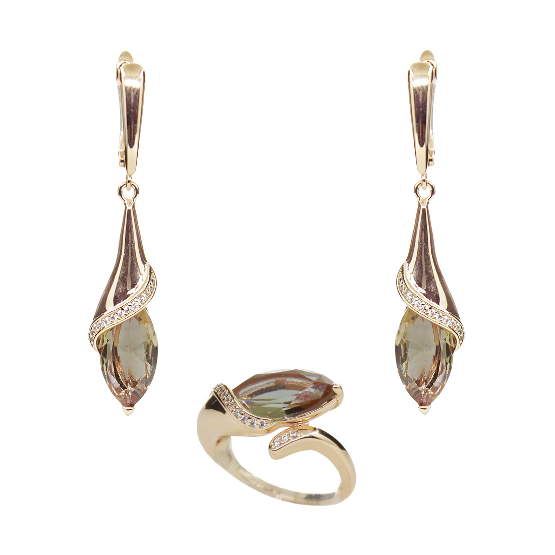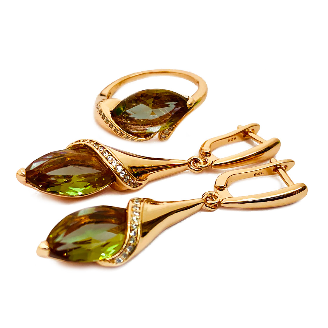 Солидный комплект со вставкой из султанита и качественным покрытием. Длина серьги с застёжкой: 48мм. Размер камня серьги и кольца: 3х11мм. Находится на удаленном складе (отгрузка на 2 дня позже).