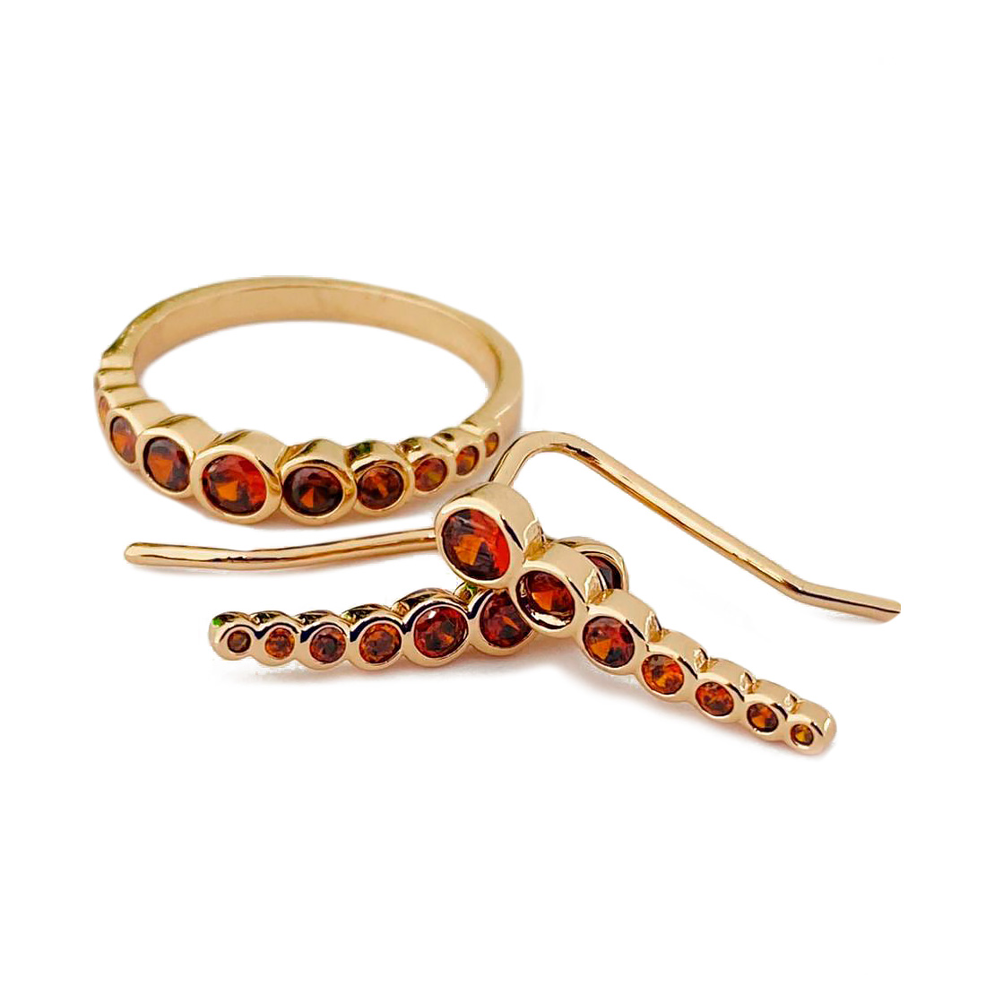 Милый комплект со вставками из фианитов цвета «гранат» и обрамлением под золото. Находится на удаленном складе (отгрузка на 2 дня позже).