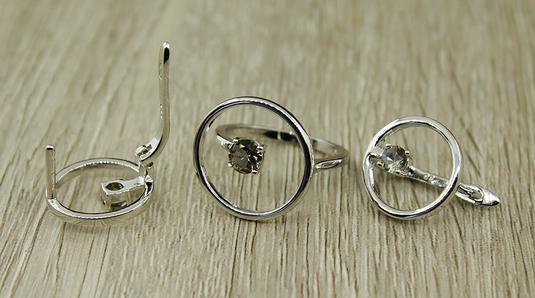 Элегантный комплект со вставкой из султанита и родированным покрытием. Диаметр серёжки: 15мм, размер вставки: 4мм.