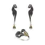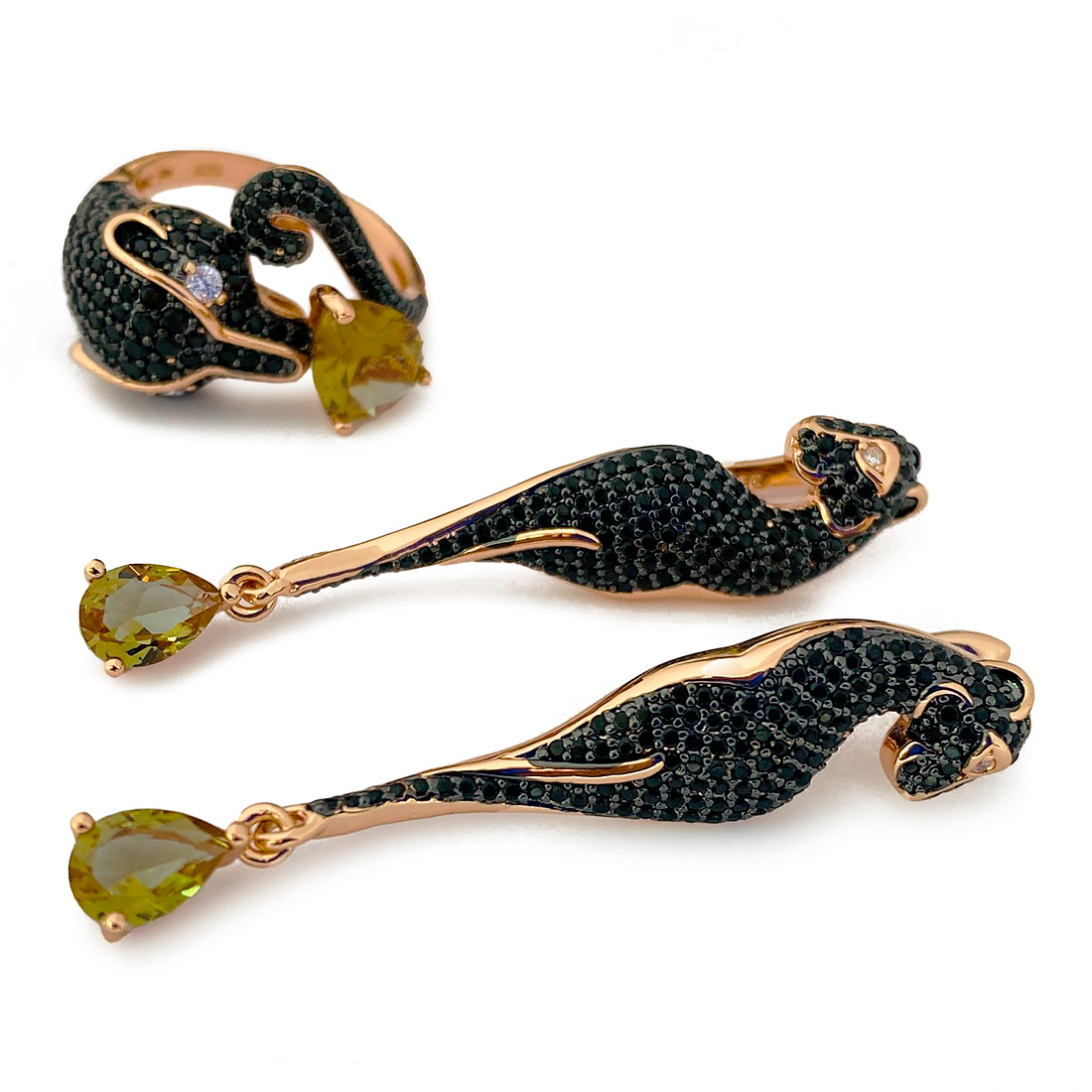 Комплект "Пантера", султанит, покрытие под золото, размеры кольца: 17, 18, 19, 20