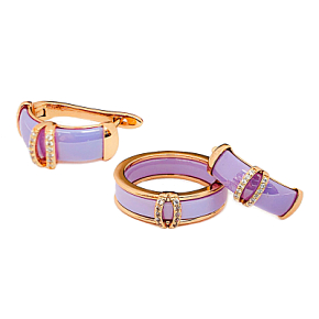 Комплект с фианитами "Карина", керамика сиреневая с покрытием под золото