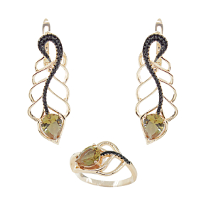 Солидный комплект со вставкой из султанита и качественным покрытием. Длина серьги с застежкой 42мм. Размер камня серьги и кольца - 7х9мм. Находится на удаленном складе (отгрузка на 2 дня позже).