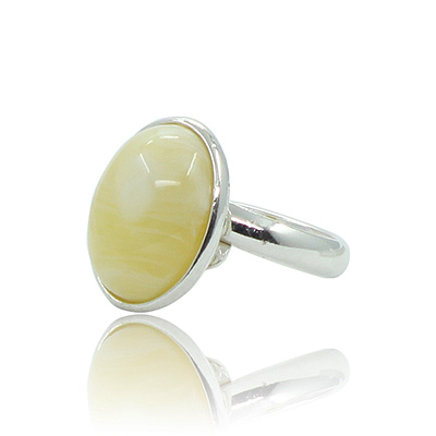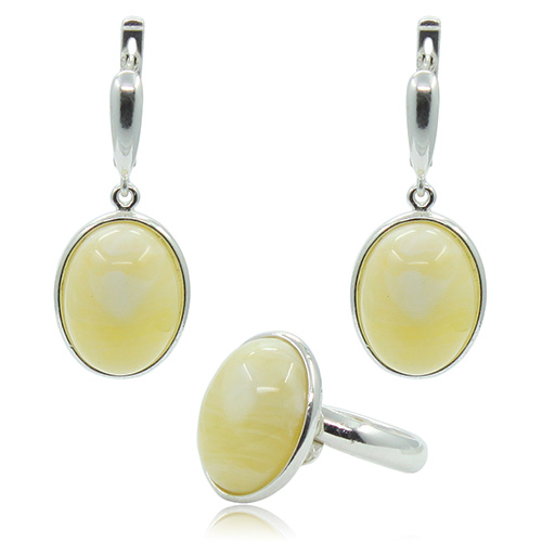 Этот симпатичный комплект украшен вставками из молочного янтаря (имитации). Размер янтарных вставок примерно 12х18мм. Кольцо безразмерное.