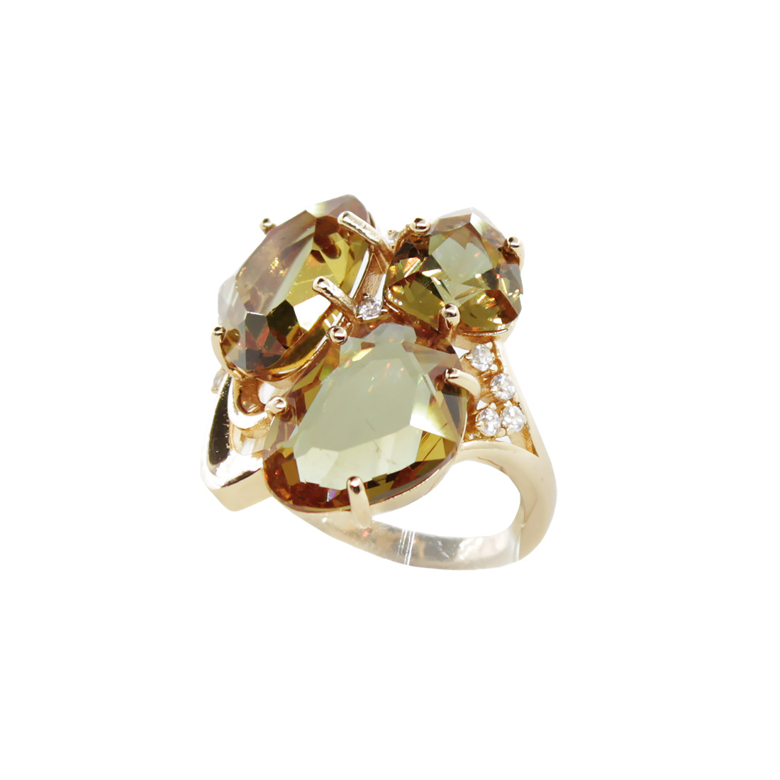 Комплект "Цефея", султанит, покрытие под золото, размер кольца 18, 19, 20