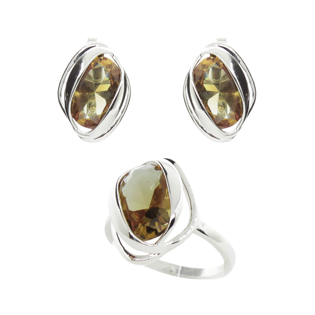 Кольцо+серьги с султанитом "Толима", покрытие родий, размер кольца 18, 20