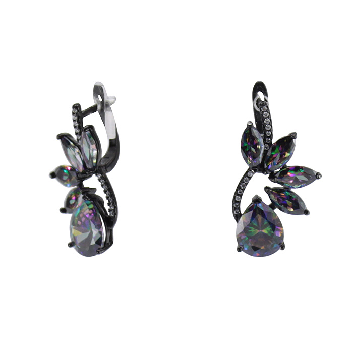 Великолепный комплект с фианитами цвета "мистик топаз". Оригинальная черная оправа придает украшению особую эффектность. Длина сережки со швензой 3см.