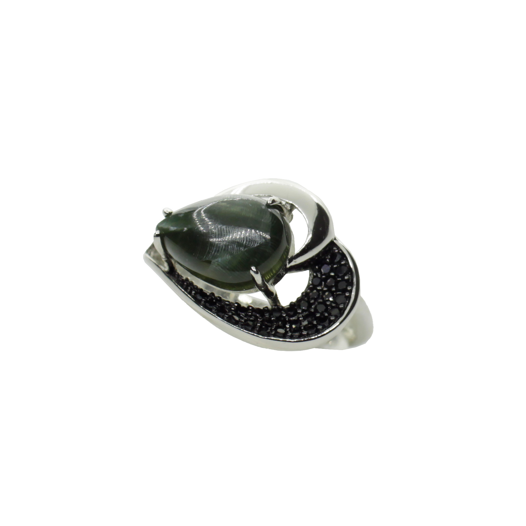 Комплект "Сэра-15", серафинит (Россия), покрытие родий, размеры кольца: 17, 18, 19, 20