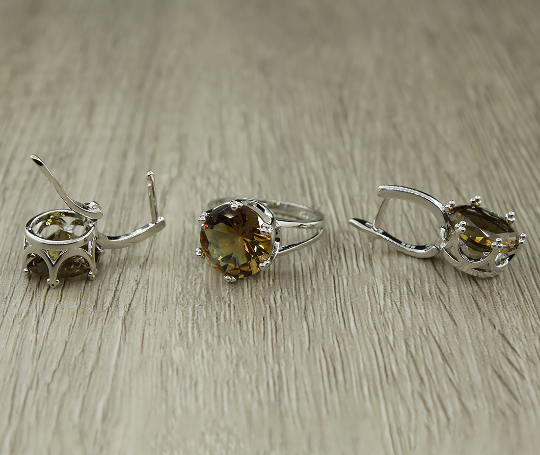 Солидный комплект со вставкой из удивительного камня султанит и родированным покрытием. Длина серьги с застёжкой: 25мм. Диаметр камня в серьге: 12мм. Диаметр камня в кольце: 12мм. Находится на удаленном складе (отгрузка на 2 дня позже).