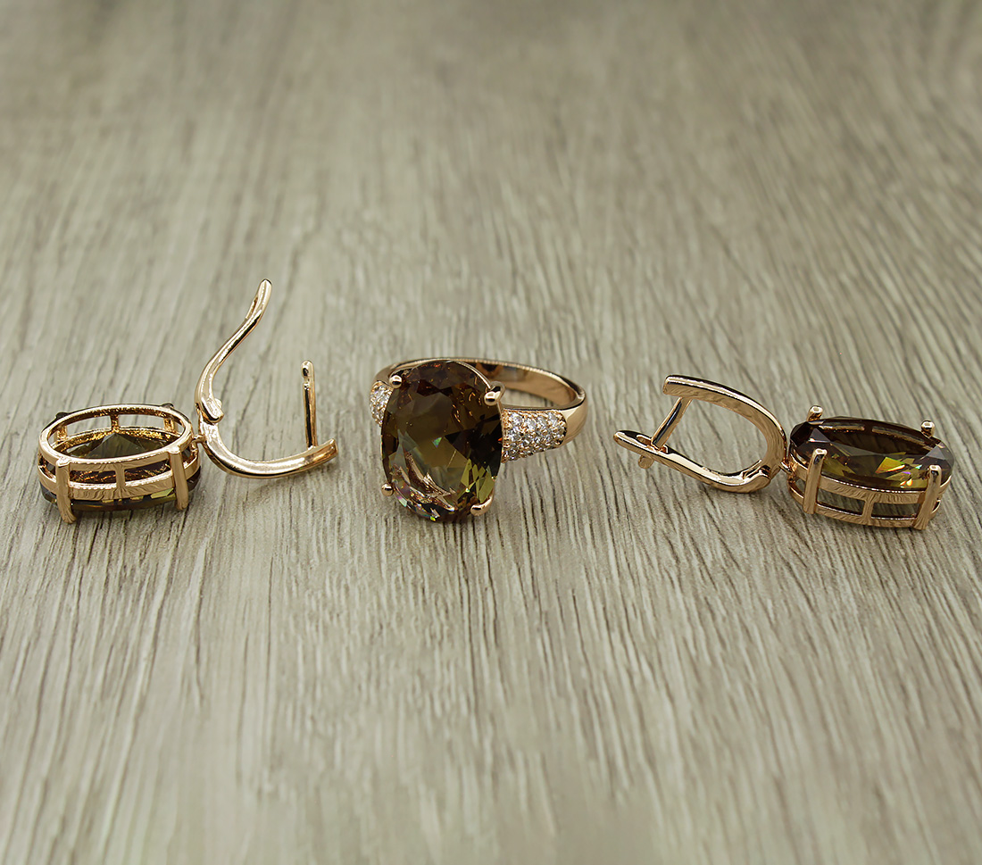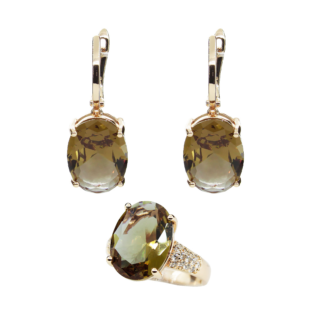 Солидный комплект со вставкой из удивительного камня султанит и качественным покрытием. Длина серьги с застёжкой: 30мм. Размер камня в серьге: 12x16мм. Размер камня в кольце: 12x16мм. Находится на удаленном складе (отгрузка на 2 дня позже)