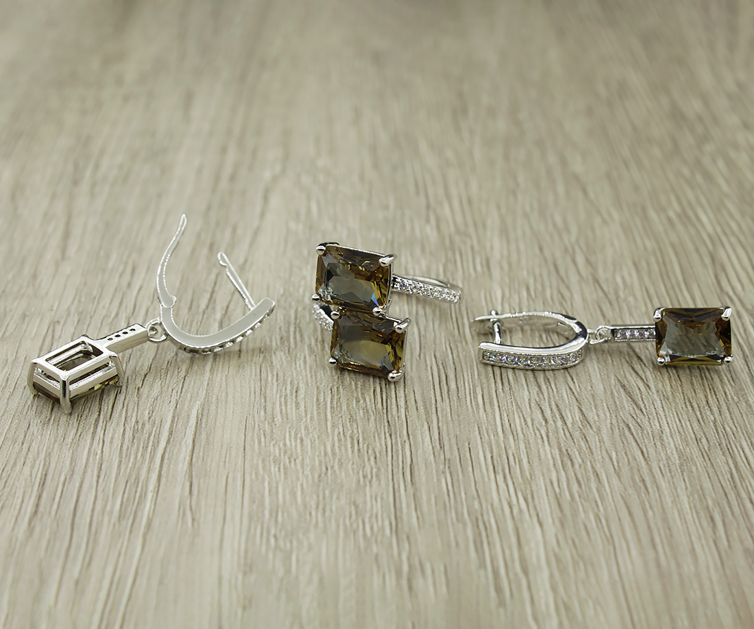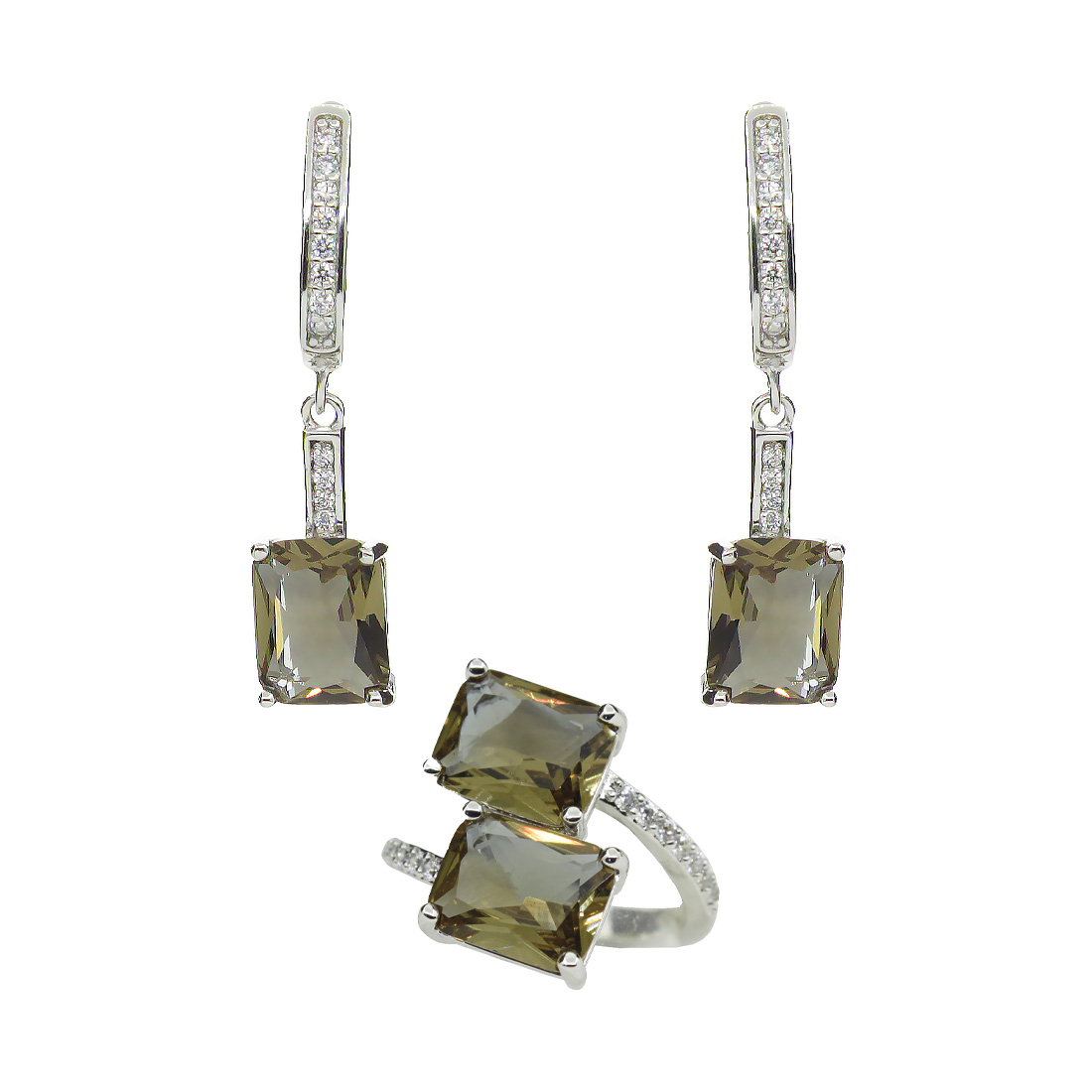 Солидный комплект со вставкой из удивительного камня султанит и родированным покрытием. Длина серьги с застёжкой: 34мм. Размер камня в серьге: 8x10мм. Размер камня в кольце: 8x10мм. Находится на удаленном складе (отгрузка на 2 дня позже).