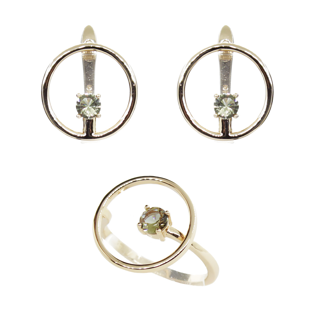 Элегантный комплект со вставкой из султанита. Диаметр серёжки: 15мм, размер вставки: 4мм.