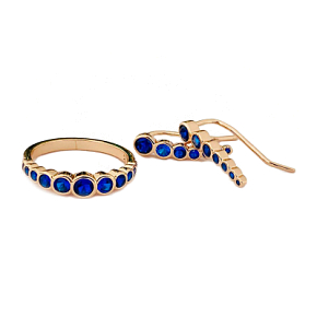 Милый комплект со вставками из фианитов цвета «сапфир» и обрамлением под золото. Находится на удаленном складе (отгрузка на 2 дня позже).