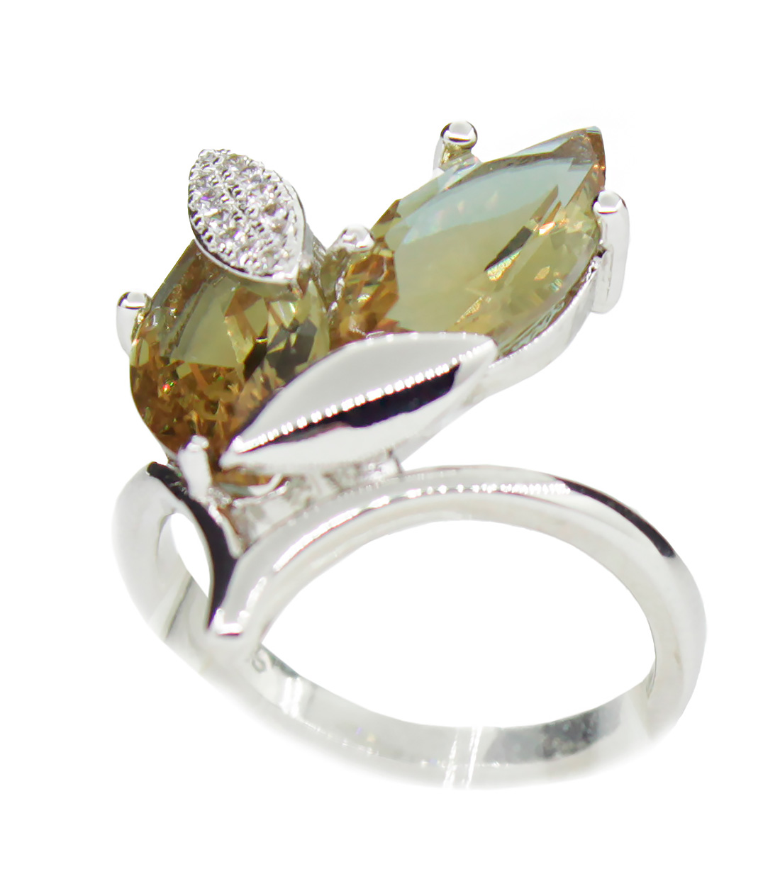 Комплект "Султан-50", султанит, покрытие родий, размеры кольца: 17, 18, 19, 20