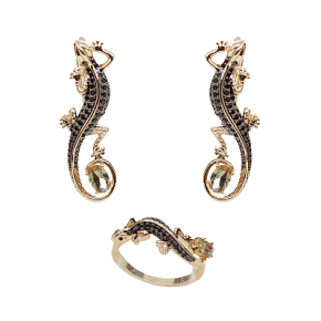 Комплект "Ящерки", султанит, покрытие под золото, размеры кольца:17