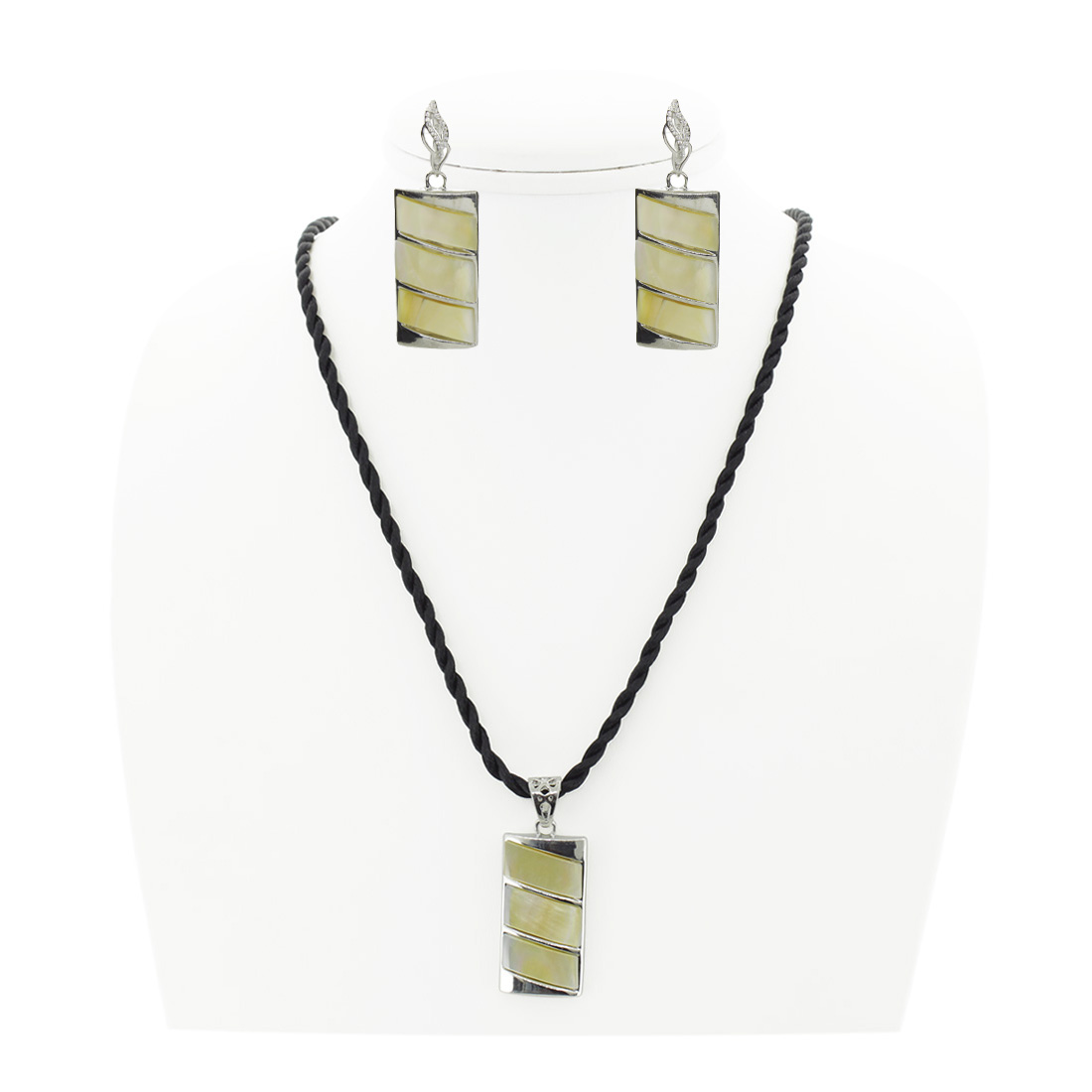 Набор "Триада" перламутр бежевый, серьги и кулон на витом шнурке